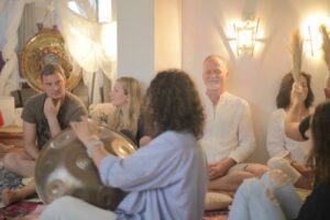 Ve druhé části bude „zvuková lázeň“ vytvořena pomocí různých hudebních nástrojů. Během procesu se účastníci uvolňují ukolébání zvuků a zpěvu, mysl je uklizena a v těle jsou spuštěny procesy obnovy. Účastníci se mohou ponořit do své vnitřní části světa a ponořit se do vizí.